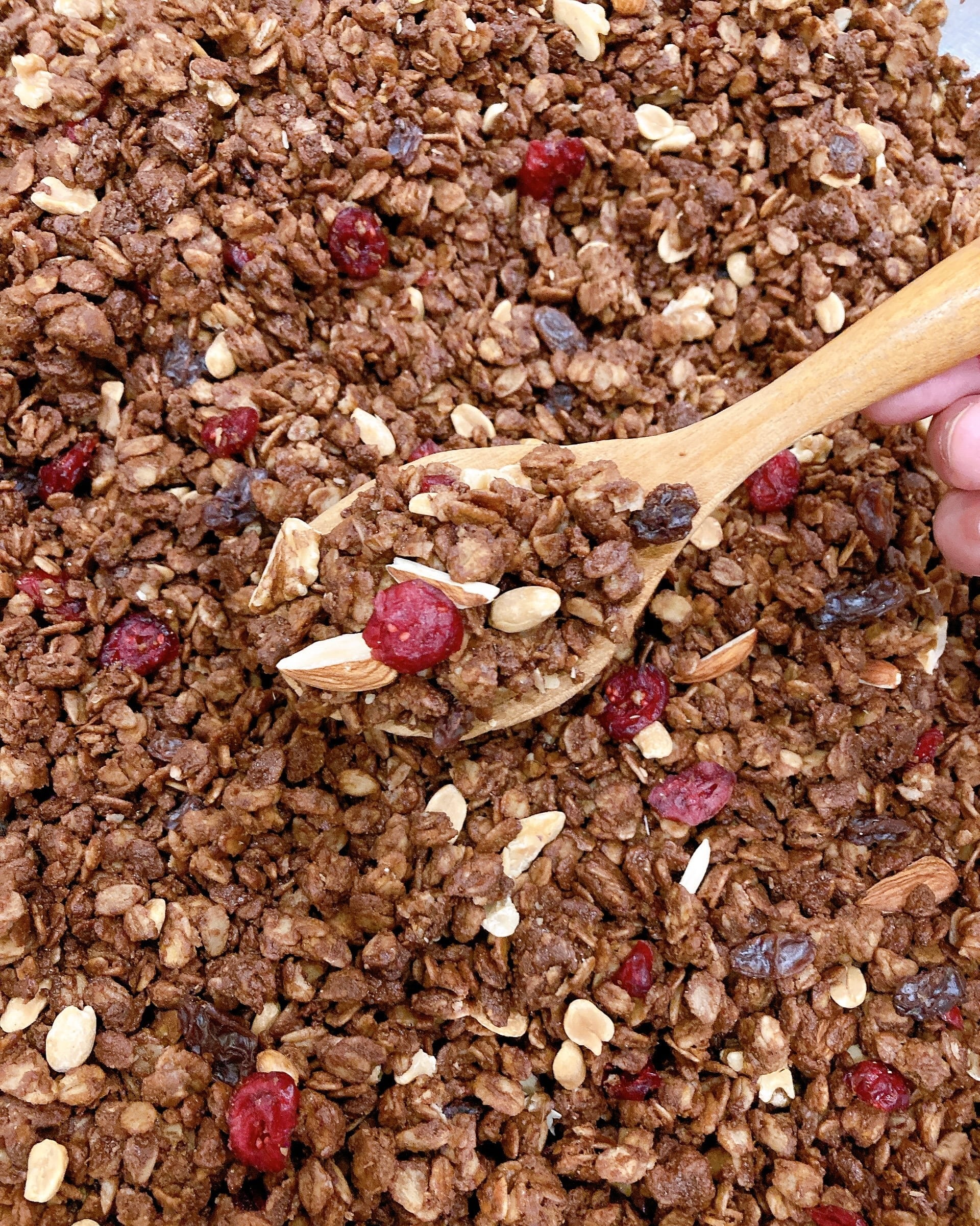 原材料名:有機オーツ麦、マスコバド糖、国産小麦粉、国産米油、国産豆乳、クーベルチュールチョコレート、有機レーズン、有機クランベリー、くるみ、有機アーモンド、自然塩